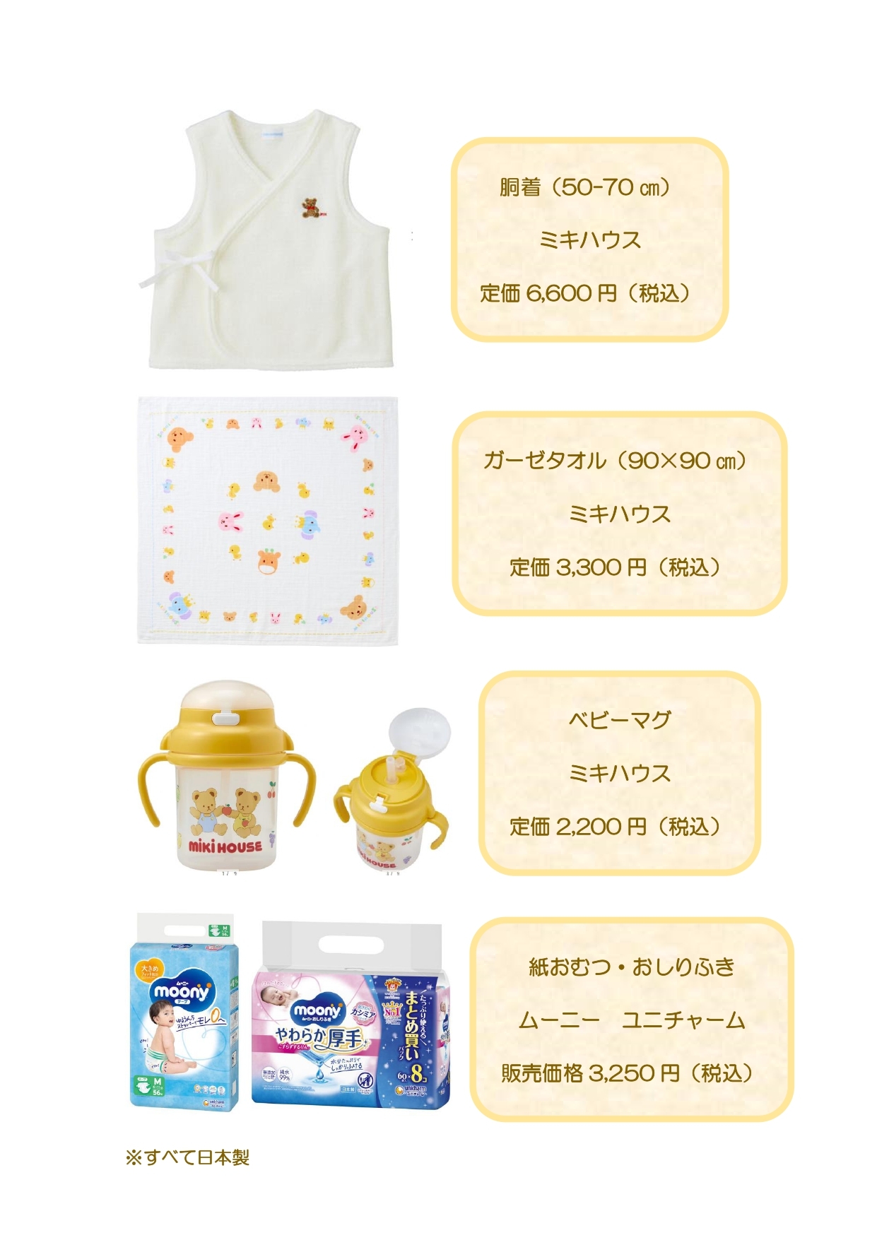 子どもの健やかな成長を願い、子育て用品5点セットを贈呈します!